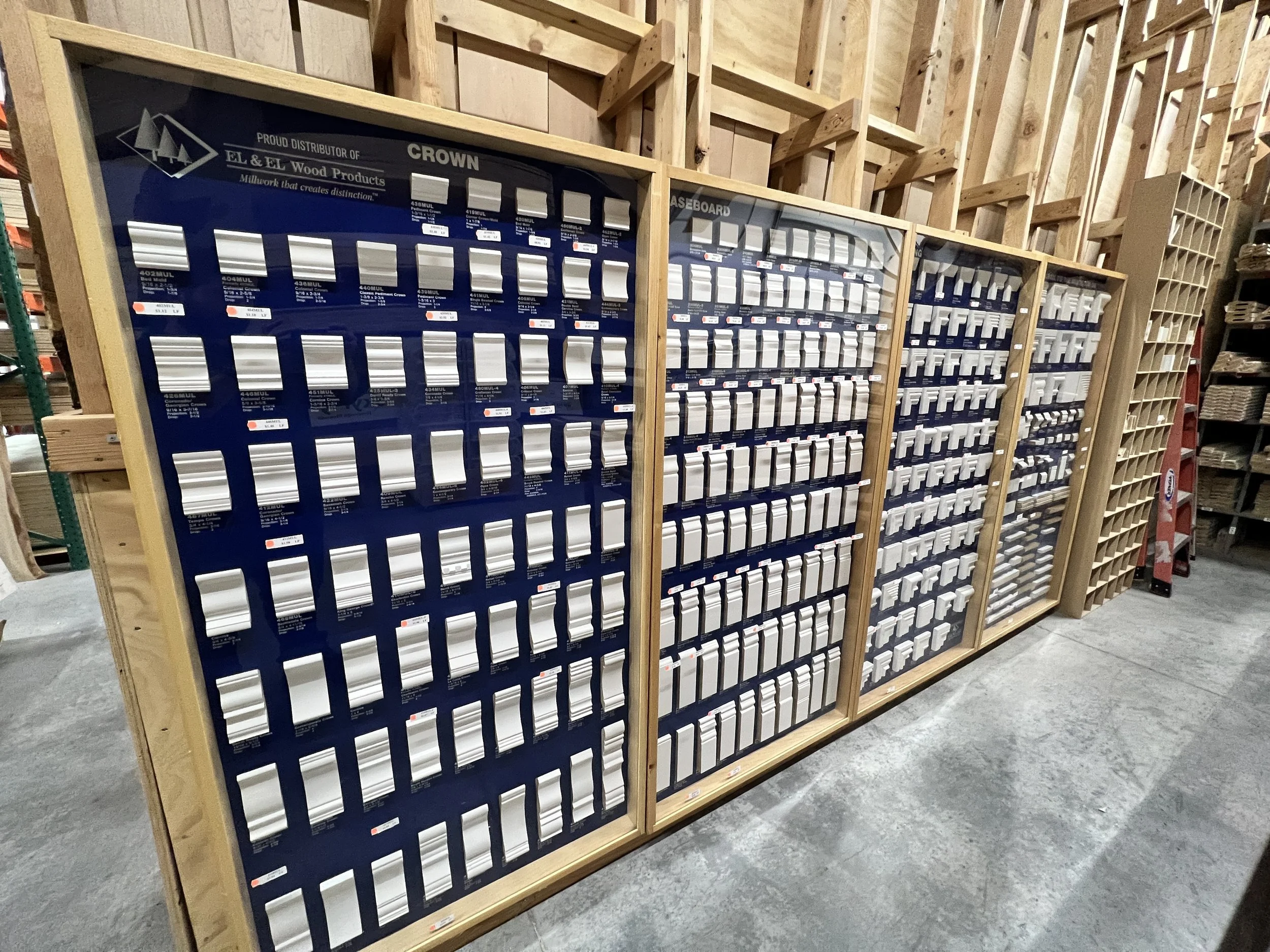 Over 600 profiles of wood mouldings in MDF, Poplar, Maple, Red Oak, Cherry and Alder. White Oak, Mahogany, Walnut also available. Decorative moldings including rope and carved mouldings. Custom runs too!